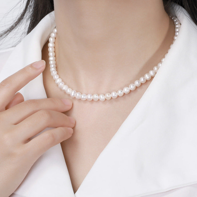 Diese Halskette verbindet die Reinheit natürlicher Süßwasserperlen mit der Eleganz von 925er Sterling Silber. Jede Perle ist einzigartig in Form und Glanz, wodurch jedes Schmuckstück ein Unikat ist. Der verstellbare Verschluss sorgt für hohen Tragekomfort und passt sich jedem Look perfekt an – ob festlich, geschäftlich oder im Alltag. Dieses Schmuckstück ist nicht nur für Frauen, sondern auch für Männer und alle, die Wert auf stilvolle Accessoires legen, eine perfekte Wahl.